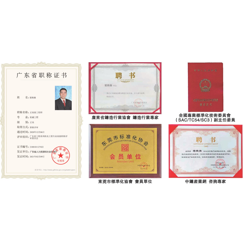 1998年RoHS認(rèn)證 、2002年“香港工業(yè)優(yōu)異獎(jiǎng)”、2009年成為合金材料國(guó)家標(biāo)準(zhǔn)起草單位、GB/T13818-2009《壓鑄鋅合金》、GB/T15115-2009《壓鑄鋁合金》、GB/T13821-2009《鋅合金壓鑄件》、通過ISO9001:2015、ISO14001:2015、2021年《壓鑄鋅合金》團(tuán)體標(biāo)準(zhǔn)。